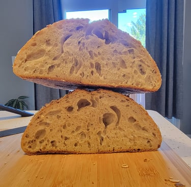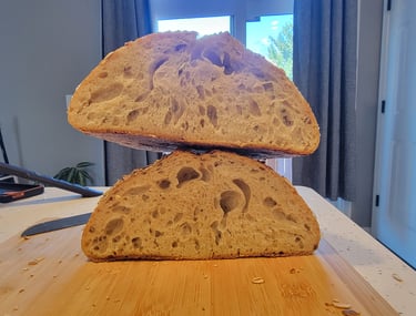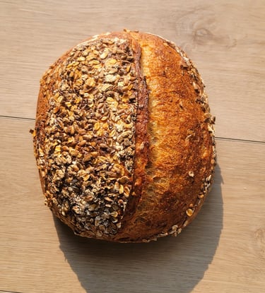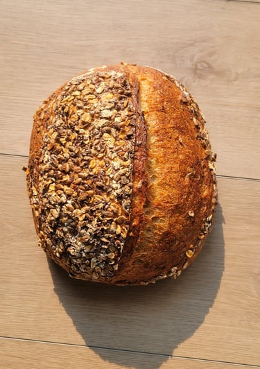 Naturally leavened, with a crisp crust and a light, tangy crumb — a timeless artisan bread crafted for every occasion.