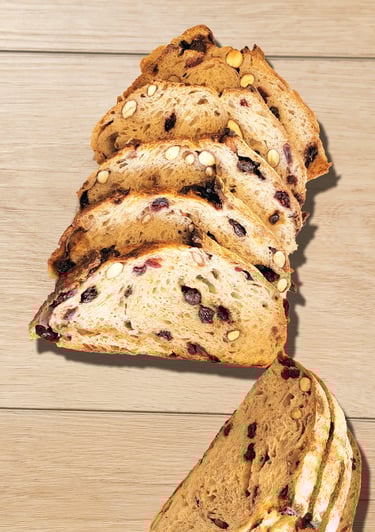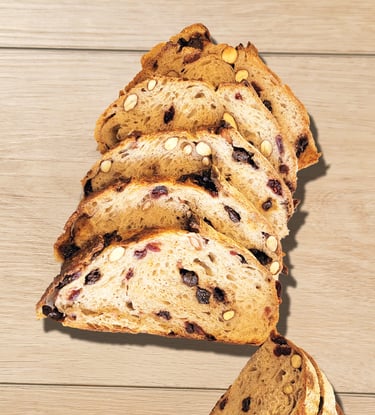 Trail Mix Sourdough combines artisan sourdough's satisfying chew with a vibrant mix of nuts, chocolate chunks, and fruit. Wholesome energy and incredible taste..